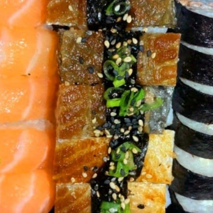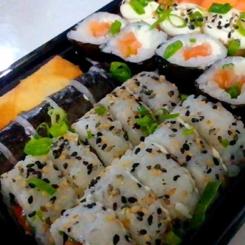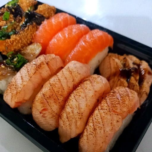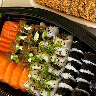 5 sushi salmão + 5 sushi skin + 12 rolls a sua escolha