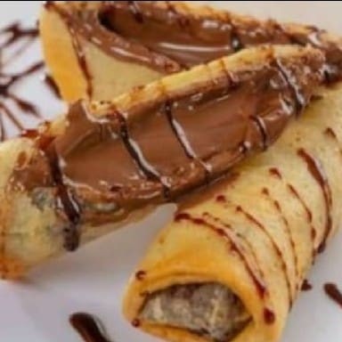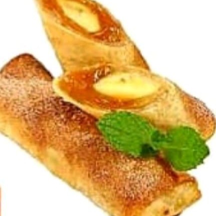Massa de harumaki com recheio de banana caramelizada e um toque de canela.