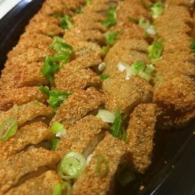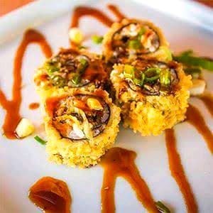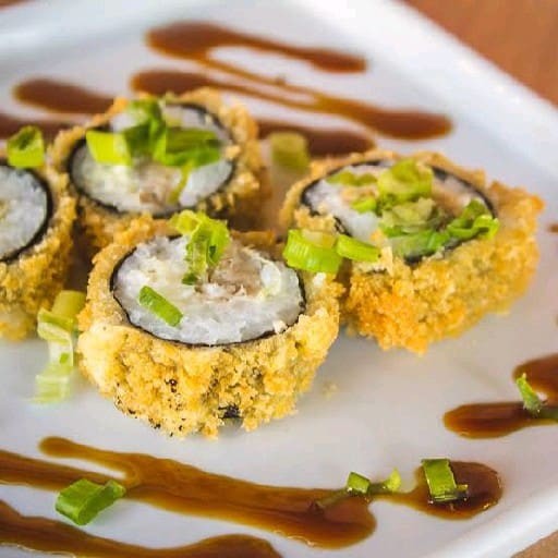 Roll com recheio de arroz japonês, cebolinha, gergelim e empanado na panko