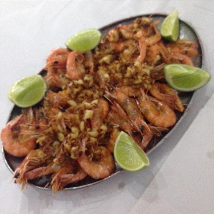 2 postas de dourado, arroz caldoso com camarão, iscas de peixe, camarão frito e pirão. Serve até 2 pessoas.