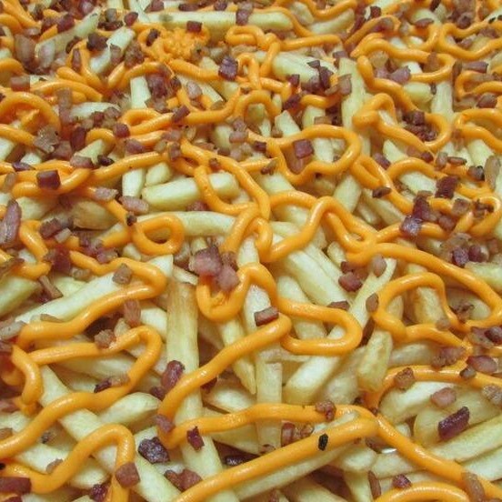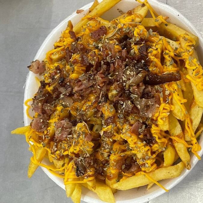 Batata frita, calabresa, bacon, oregano, alho torado, cheddar e requeijao