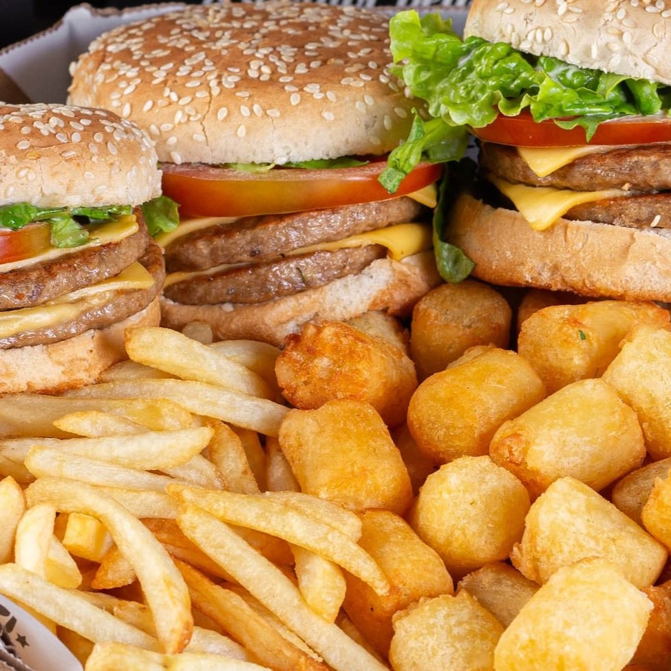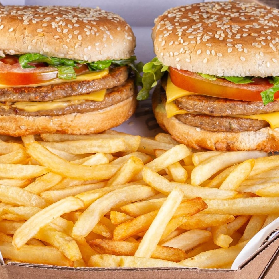 Box Para Dois: Desfrute de dois suculentos hambúrgueres acompanhados de suas favoritas, batatas crocantes ou aipim.