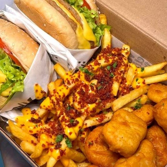 O combo perfeito para compartilhar com a galera! 1 kg da famosa Batata com cheddar e Bacon + 5 deliciosos Burgers à sua escolha, acompanhados de salada fresca e o irresistível molho de maionese temperada da casa. E o melhor, ganhe uma Coca Cola 1,5l grátis! Peça agora e desfrute dessa explosão de sabores! . . . Tags: Coca cola, batata com cheddar e bacon, batata recheada, hambúrguer, grátis, entre