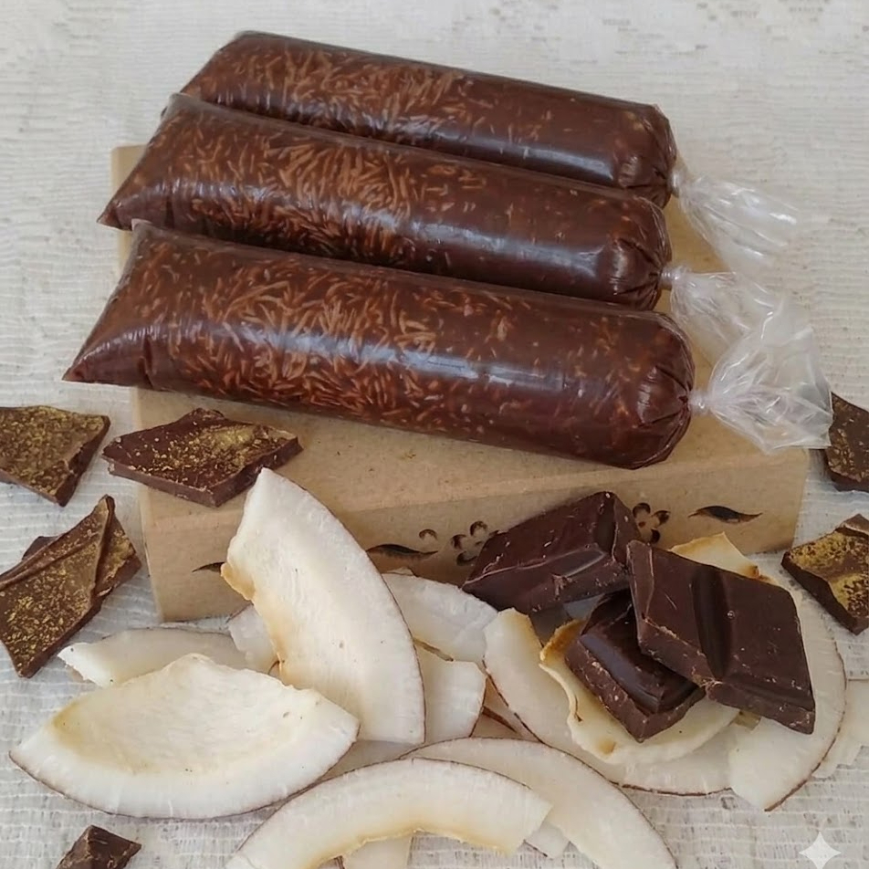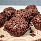 Metade brigadeiros de chocolate e metade brigadeiros de ninho