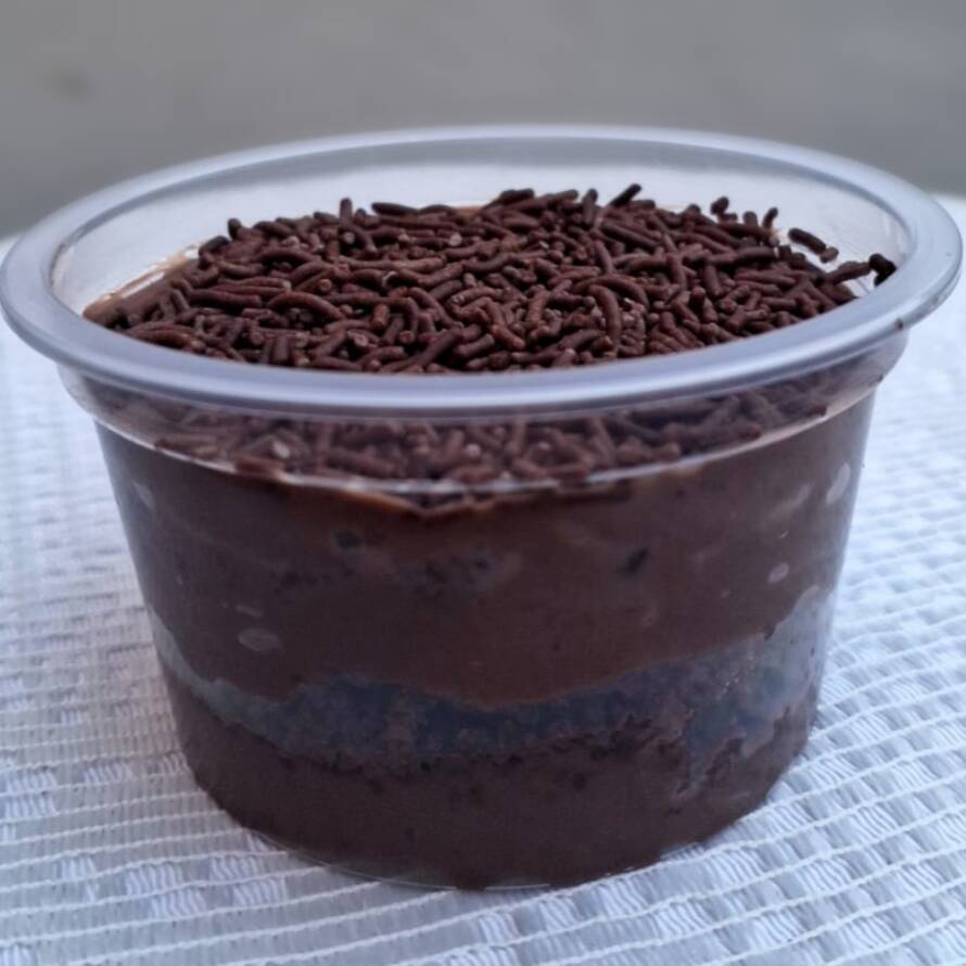 Delicioso bolo molhadinho de chocolate no pote com recheio de brigadeiro cremoso. Um doce bem chocolatudo pra quem é chocólatra de verdade. Peso aprox. Do doce: 250g