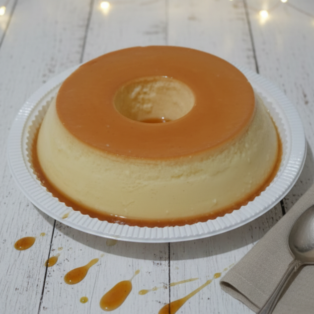 Um delicioso pudim de leite condensado com calda de caramelo para a família inteira! Serve até 4 pessoas.