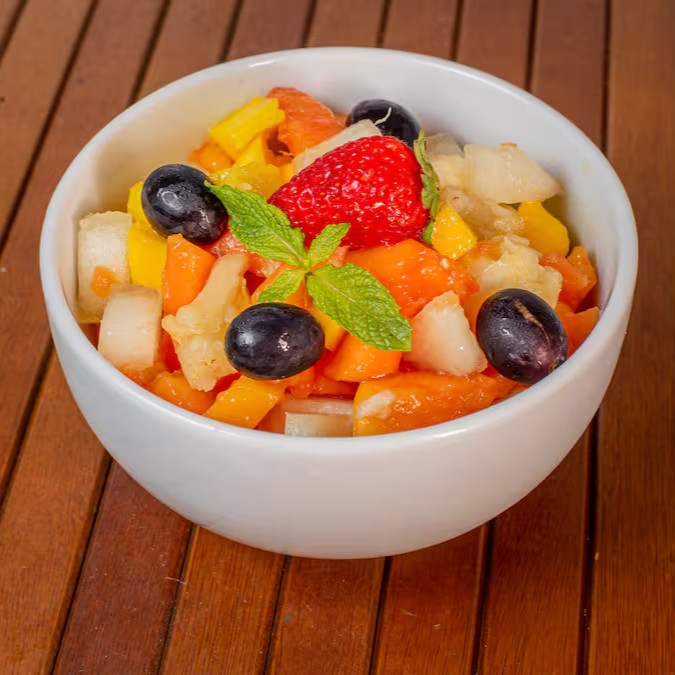 Salada de Frutas Tropical composta só com frutas selecionadas.