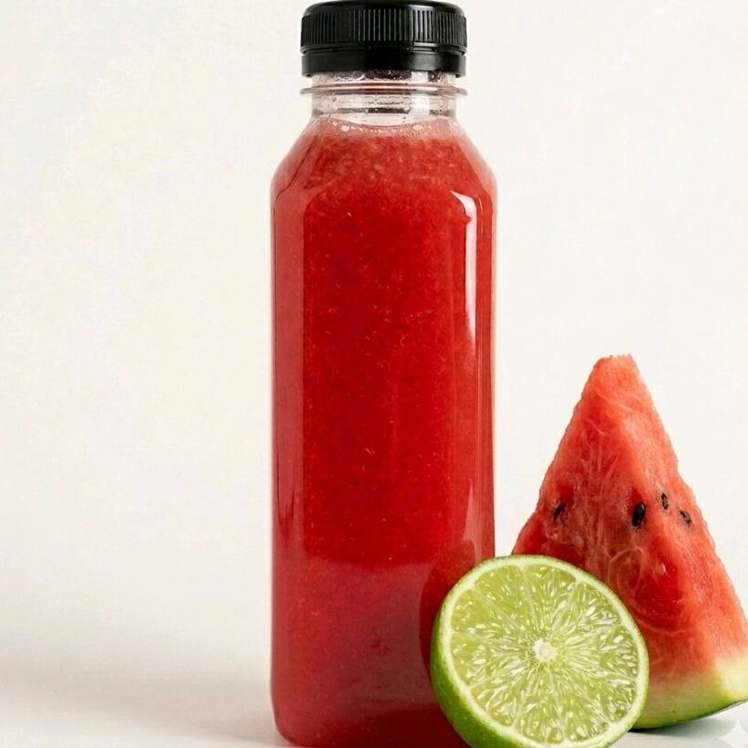 Polpa de melancia, limão água e açúcar ou adoçante.