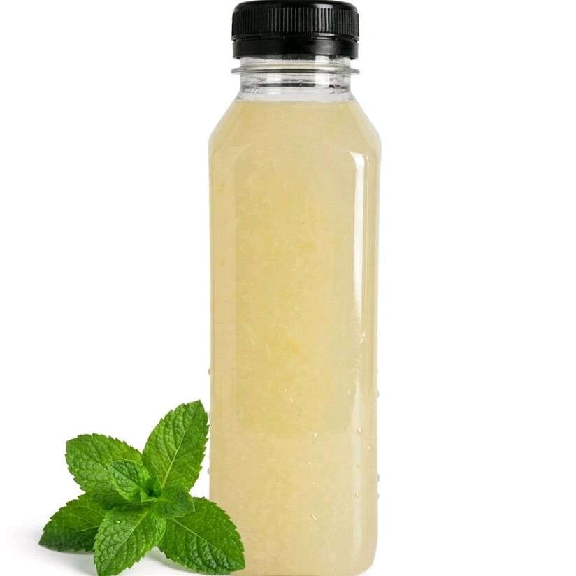 Polpa de abacaxi, hortelã, água e açúcar ou adoçante.