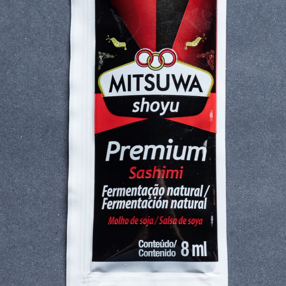 1 Sachê: 8ml (contém glúten) O Molho Shoyu Sachet Premium Mitsuwa é um delicioso molho feito a base de soja especial