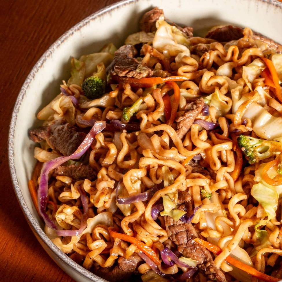 Yakisoba de frango + Bebida A massa não contém ovos. (Obs: Não retiramos nenhum legume do yakisoba) Peso aproximado: 500g