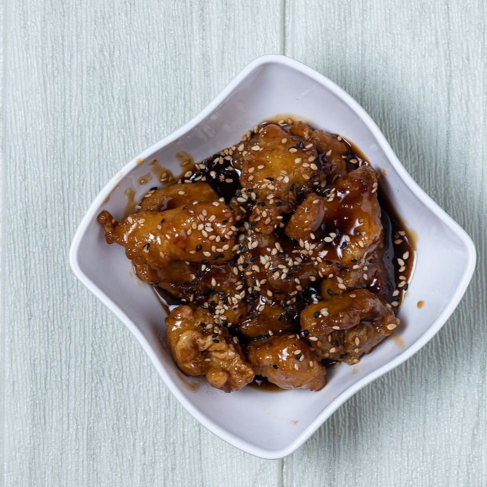 Fatias de frango com o nosso especial molho teriaky. Peso: (Aproximadamente 250g)
