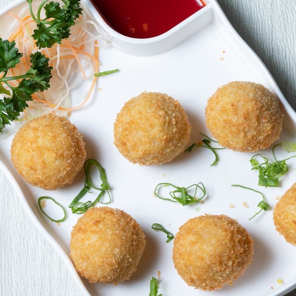 Bolinho de peixe frito com curry tailandês. Acompanha: 1 molho tarê