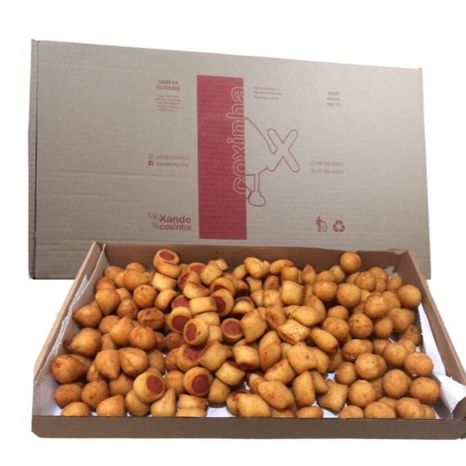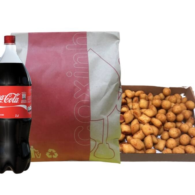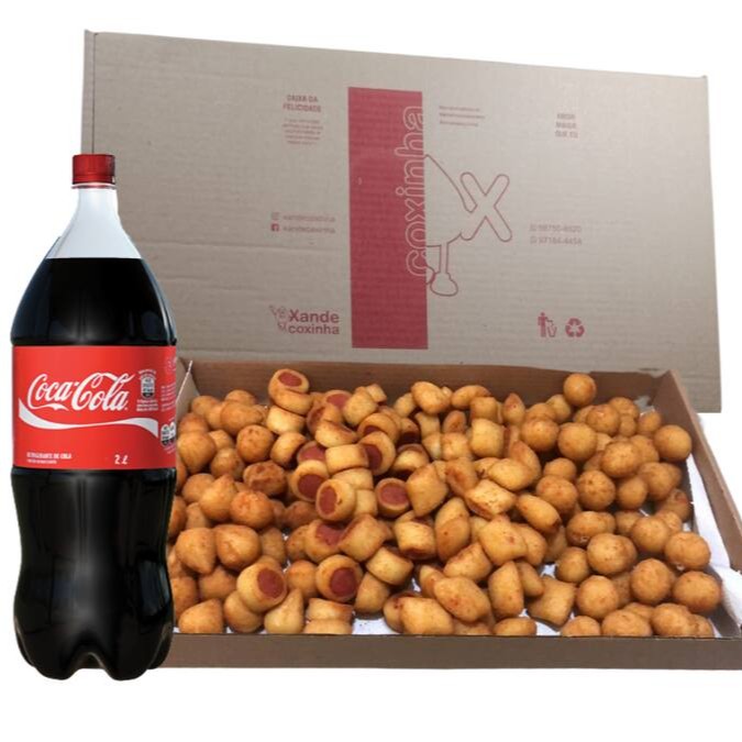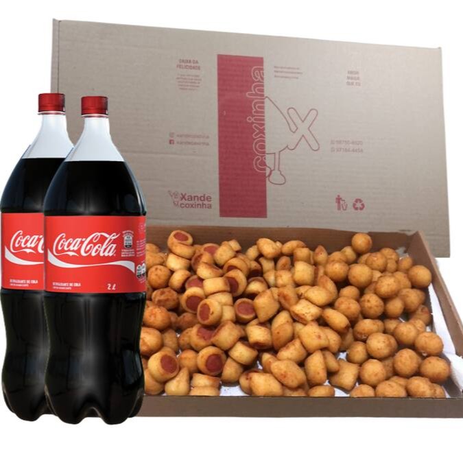 150 deliciosos salgadinhos fritos na caixa + 1 Coca de 2 Lt.