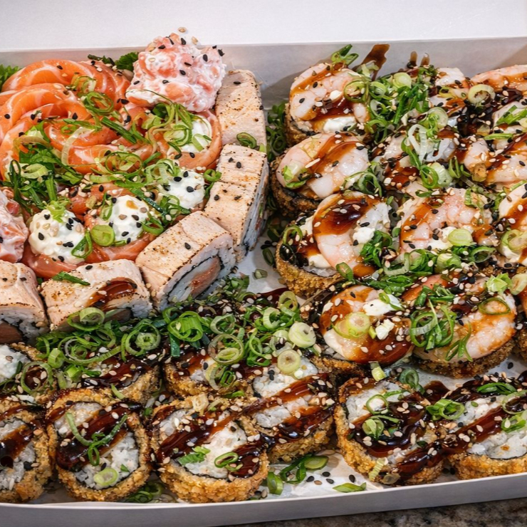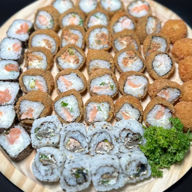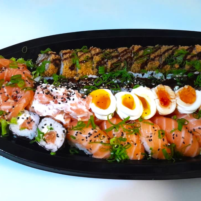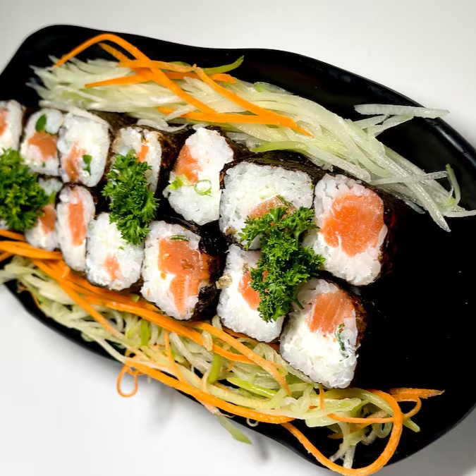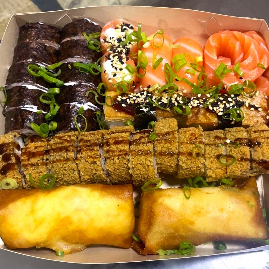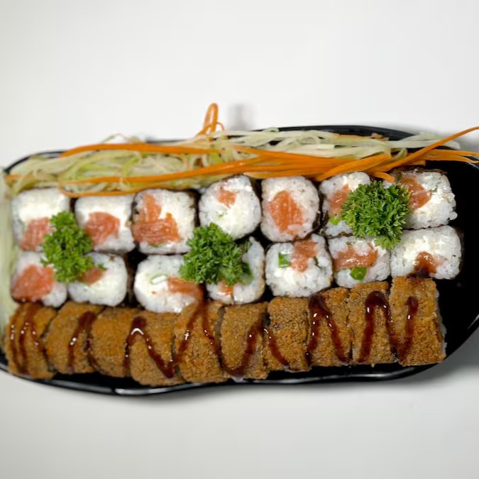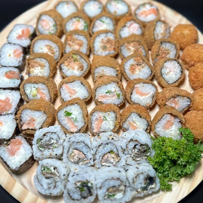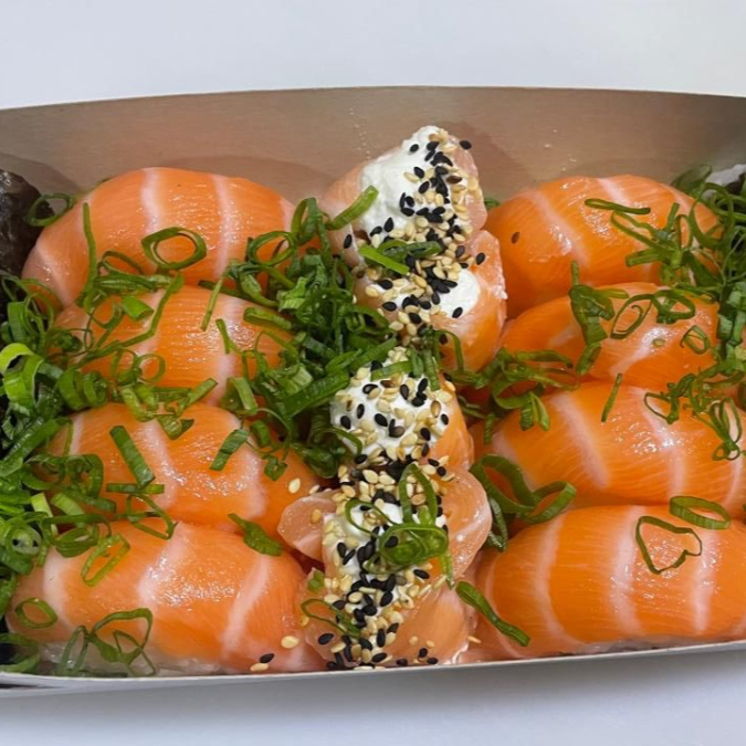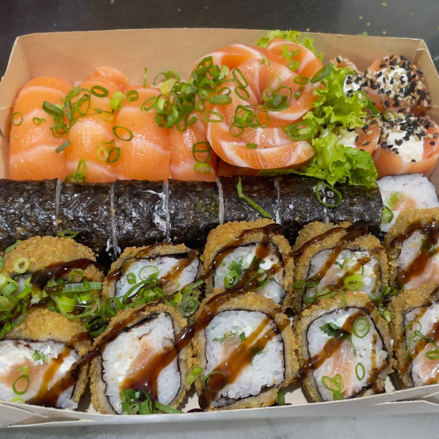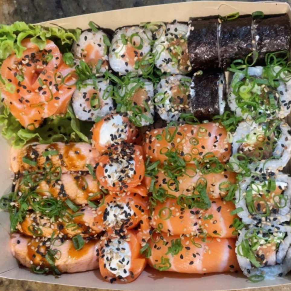 4 Joe salmão, 4 Sushi Salmão, 5 hot filadelfia,4 Hossomaki filaddelfia, 8 Uramaki skin.
