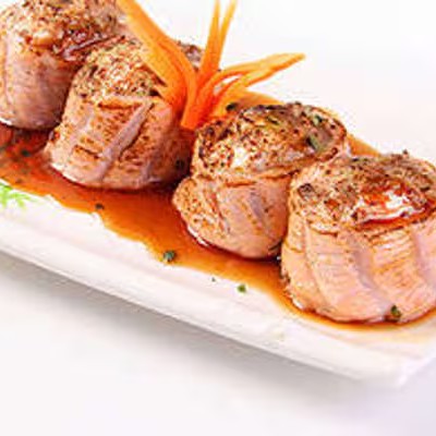 Fatias de salmão flambado