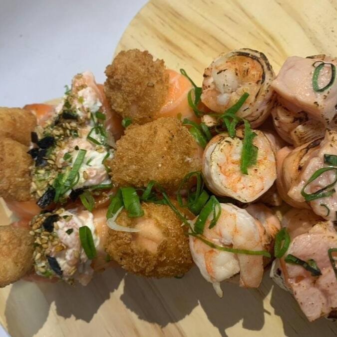 3 Joe Camarão Empanado, 3 Joe Salmão Crocante, 3 Joe Ebi Maçaricado, 3 Joe com Patê de Salmão, 3 Joe Salmão Maçaricado.