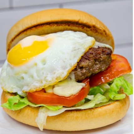 Foto meramente ilustrativa. Pão, carne, queijo, ovo e molhos.