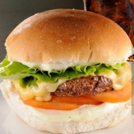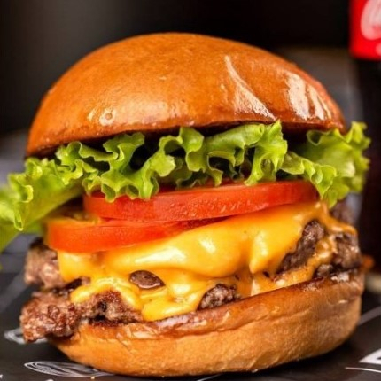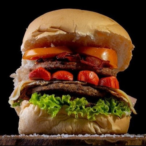 Foto meramente ilustrativa. Pão, 2 carnes, 2 queijos e molhos.