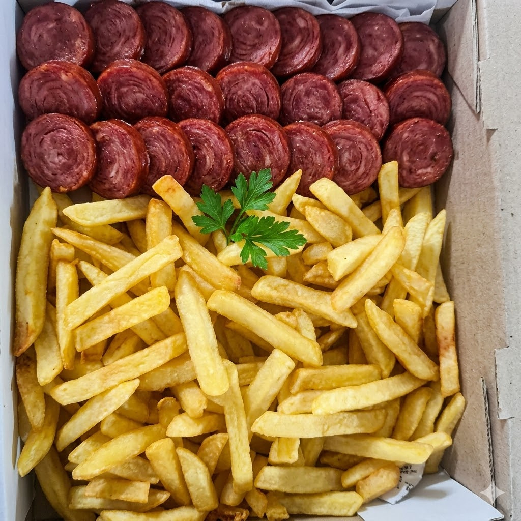 3 x tudo + batata + 8 salgados e/ou nuggets + calabresa.