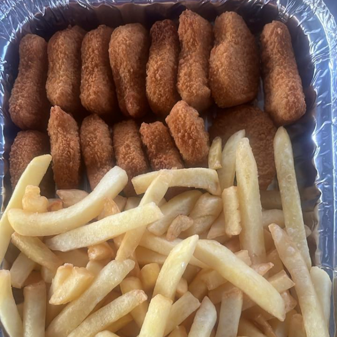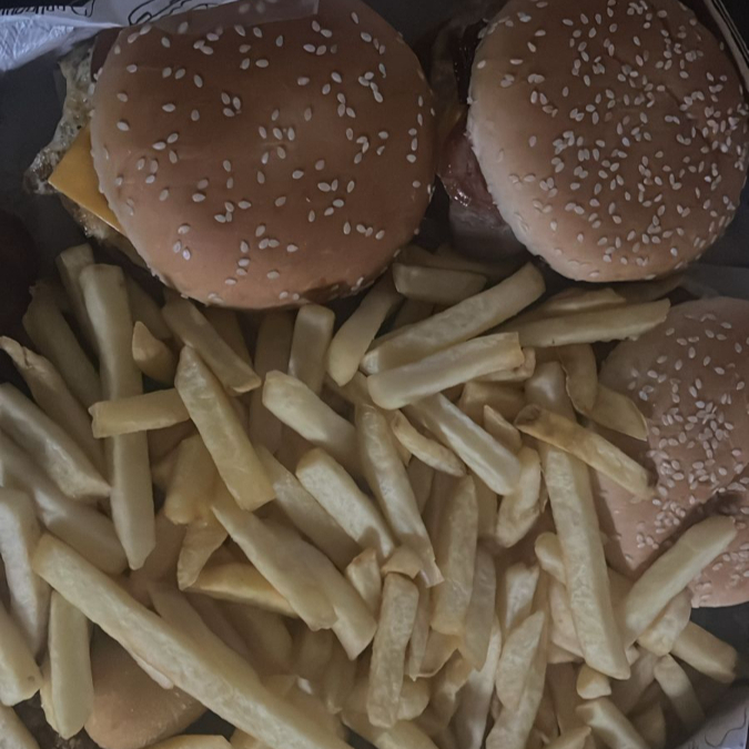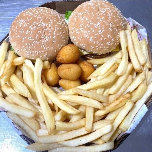 2 x tudo + 400 Gr batata + 8 SALGADOS OU NUGGETS.