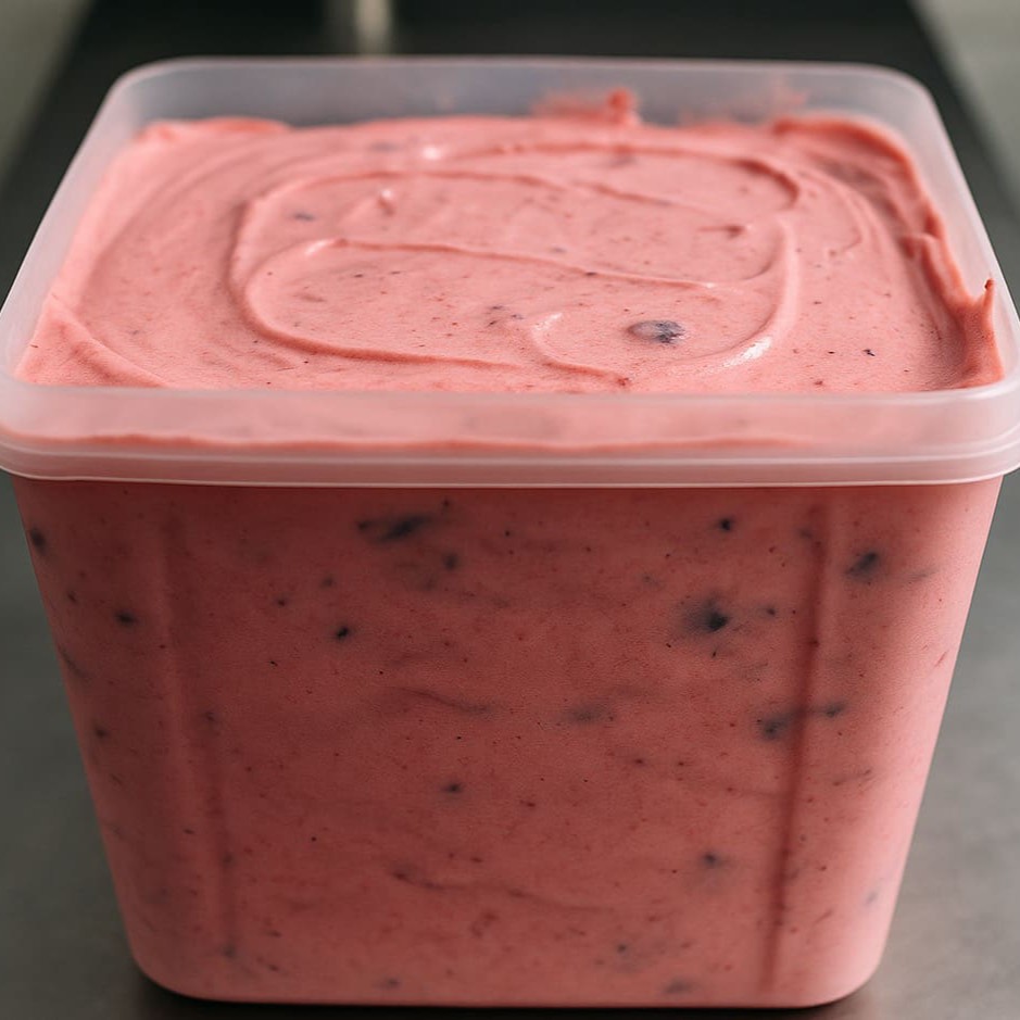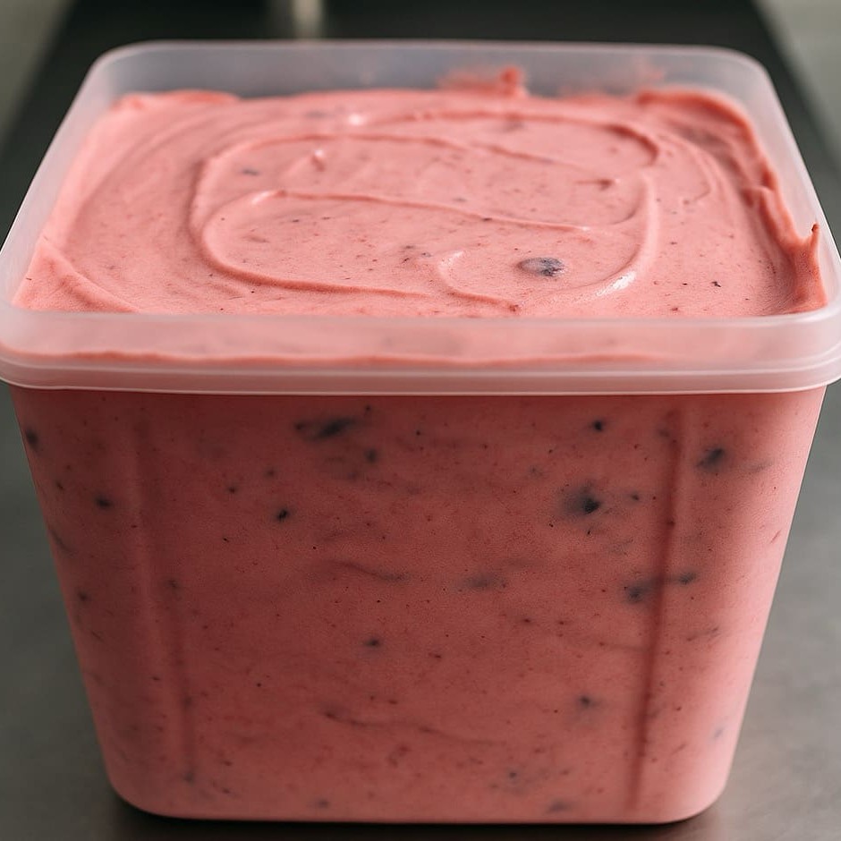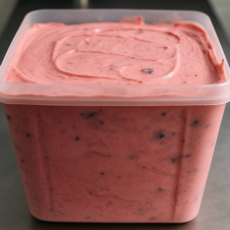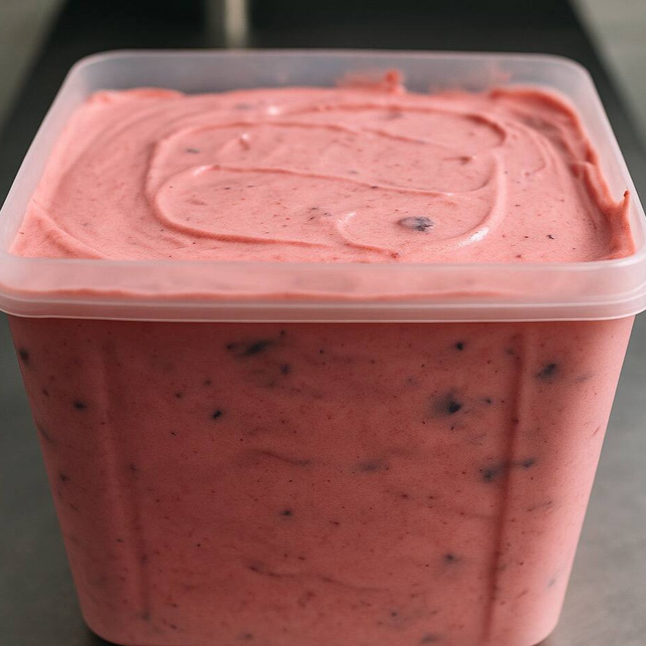 Nosso sorvete artesanal de morango com pedaços de morango, feito ao leite com ingredientes selecionado. Acompanha completos a sua escola sem adicional.