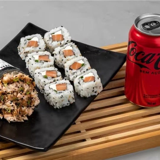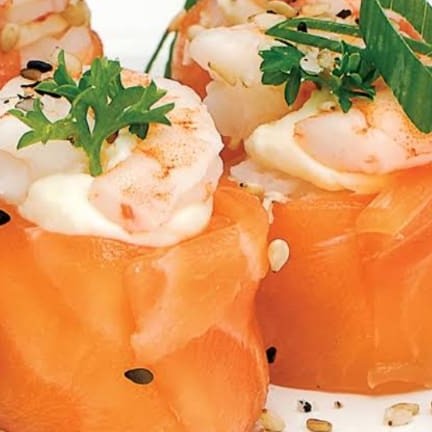 4 bolinhos de Salmão + 6 tempurá (Camarão crocante empanado)