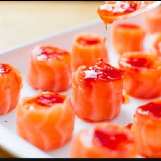 Arroz , salmão fresco , cream chesse , geleia de maracujá