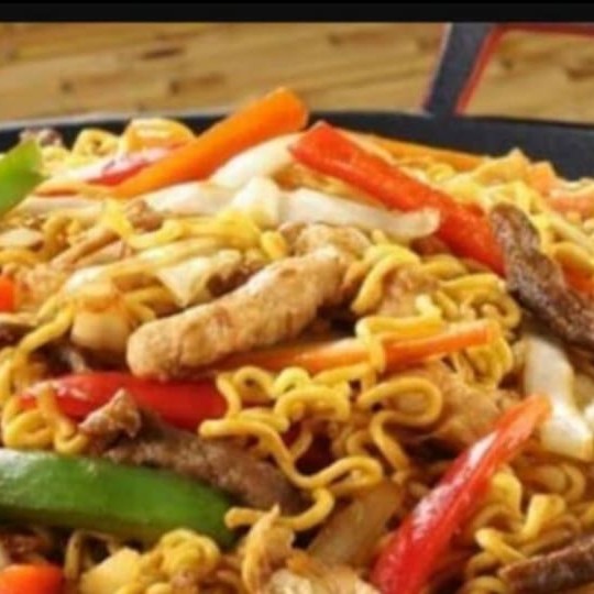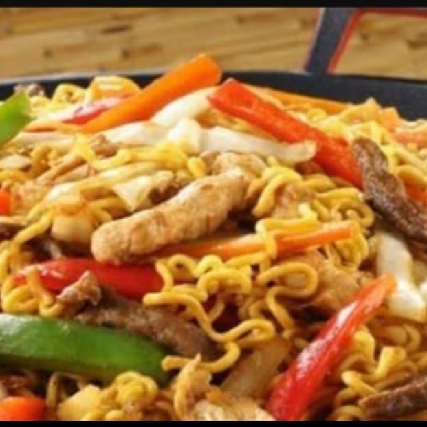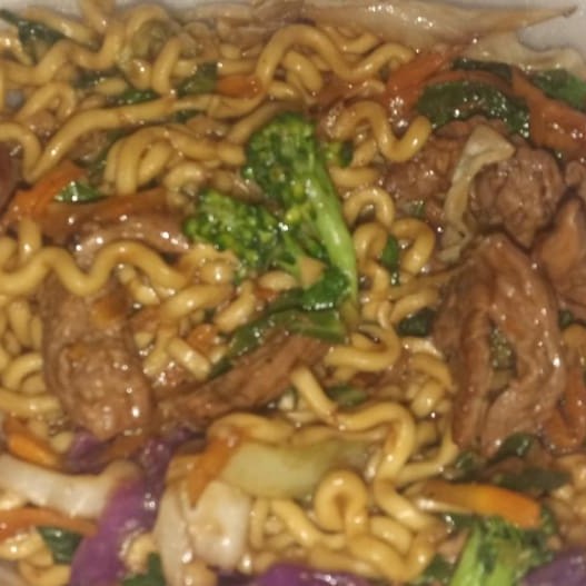 Carne , frango , macarrão, repolho verde, repolho roxo, cenoura, brócolis americano