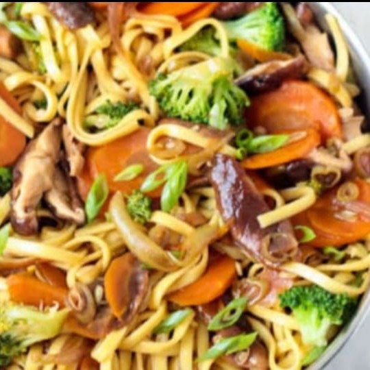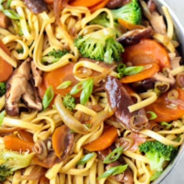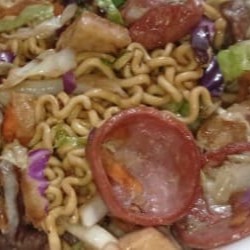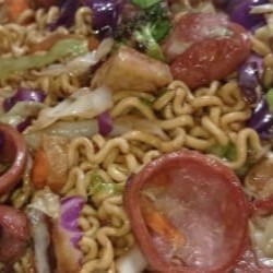 Delicioso yakissoba de calabresa , com legumes e macarrão oriental