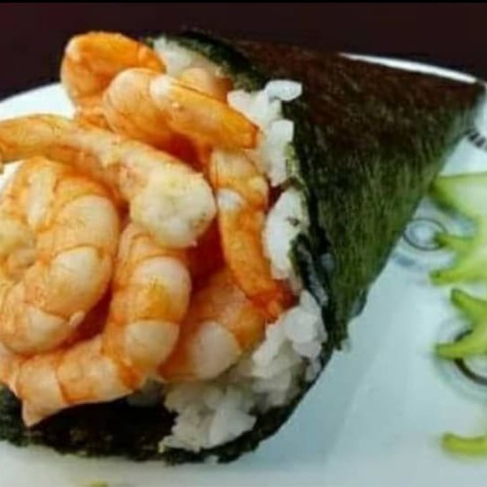 Camarão, arroz , alga ,cream chesse e cebolinha.