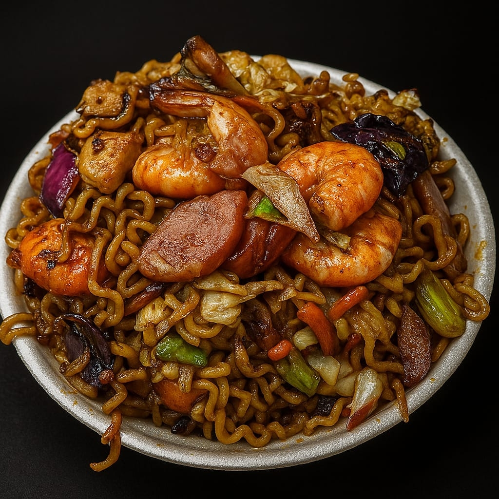 Misto (camarão , Frango E Calabresa) Delicioso Yakisoba Misto C Legumes (cebola,repolho E Cenoura) E Molho Shoyu