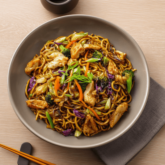 Frango E Calabresa - Delicioso Yakisoba Misto C Legumes (cebola,repolho E Cenoura) E Molho Shoyu