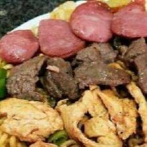 Macarrão, cenoura, repolho, cebola, carne, calabresa, frango