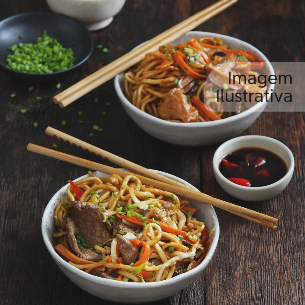 🍜 Yakisoba Misto Macarrão oriental com frango, carne e calabresa + carne OU camarão (à escolha). 🥬 Acompanha repolho branco, repolho roxo, cenoura e cebola + molho shoyu. 🔥 Bem servido, feito na hora e cheio de sabor!