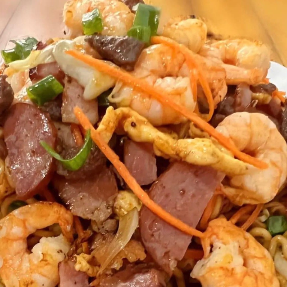 Acompanha: macarrão, camarão, carne, frango, calabresa, cenoura, repolho, cebola, alho e molho shoyo ~~~ Tamanhos: Pequeno : Serve até 1 pessoas Médio : : Serve até 1 pessoas Grande: : Serve até 2 pessoas