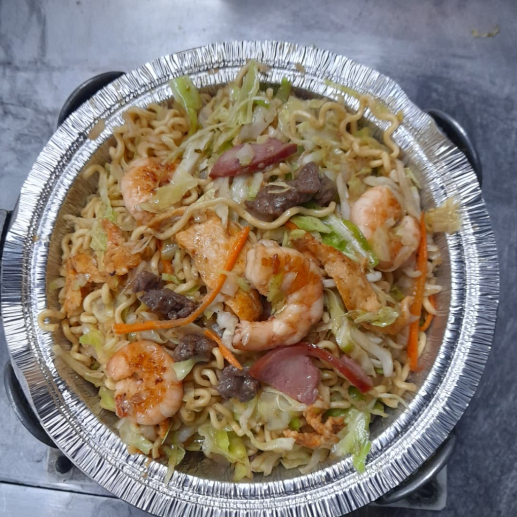Macarrão, calabresa, frango, carne, camarão, legumes e shoyo