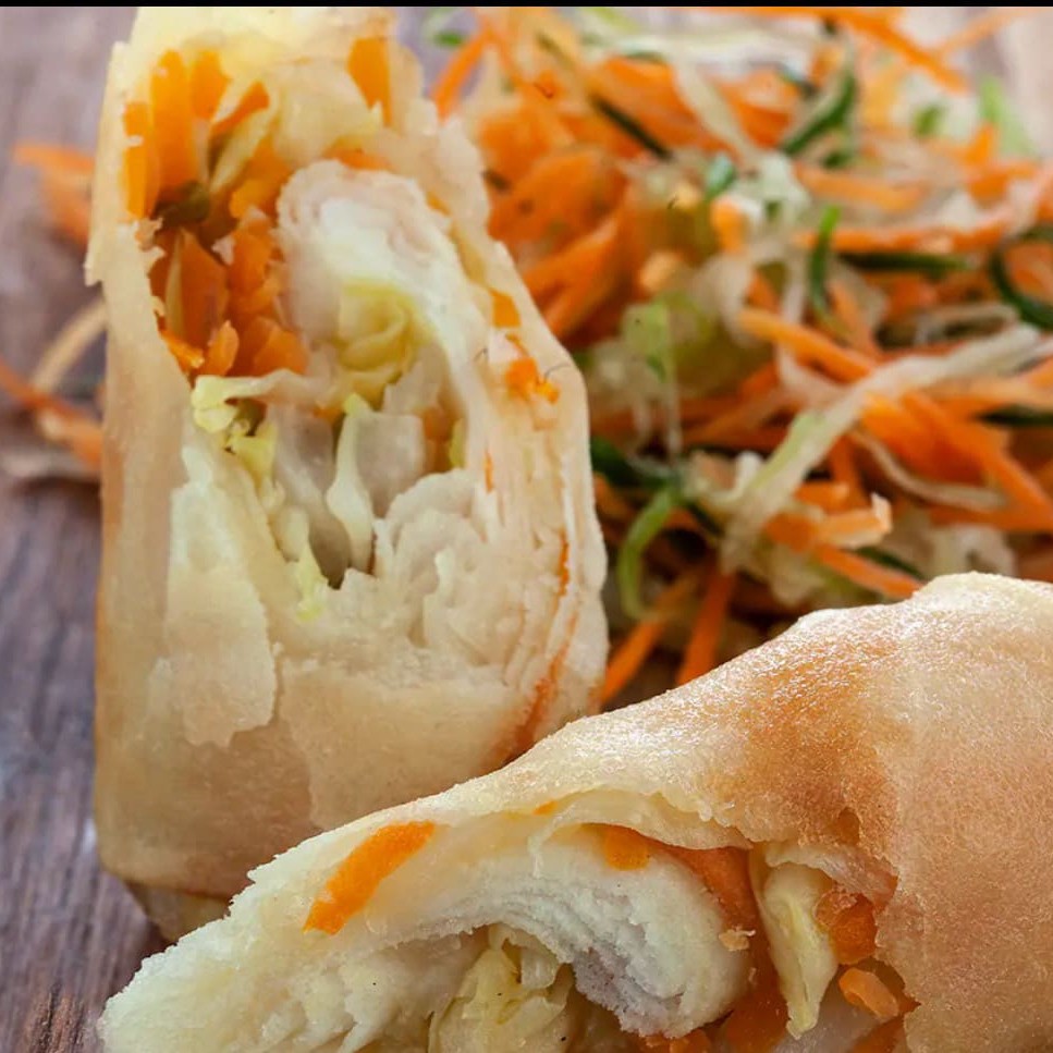 Massa Harumaki frita com recheio de um mix de cenoura e repolho refogado