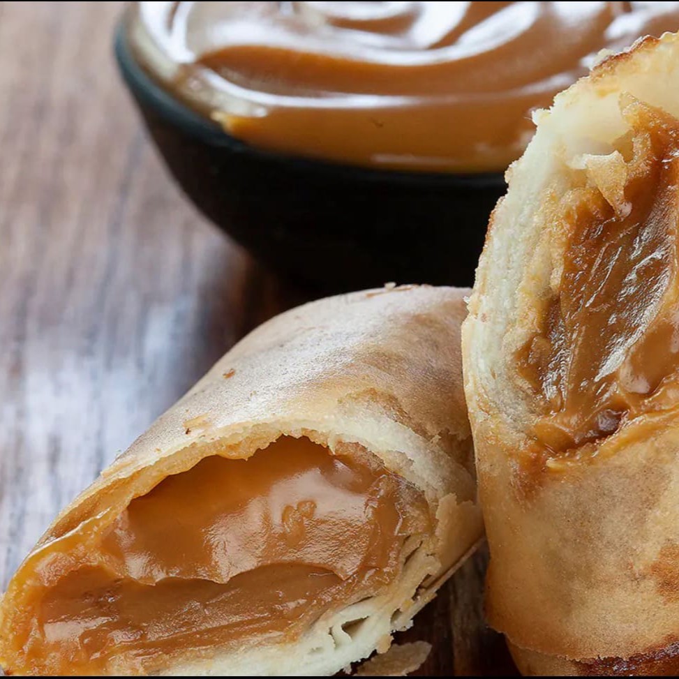 Recheado com doce de leite encorporando com essa massa de harumaki e uma paixão em cada mordida.