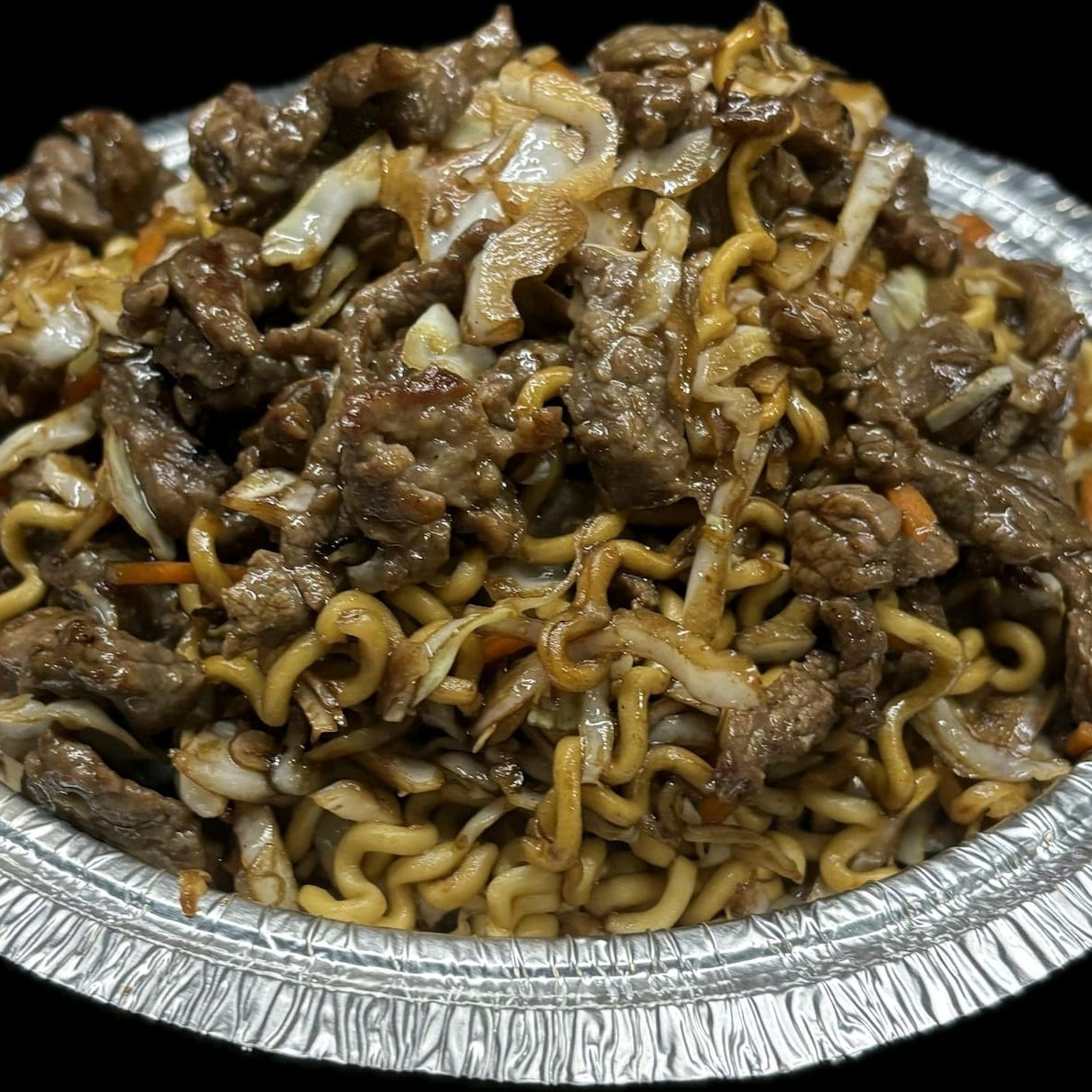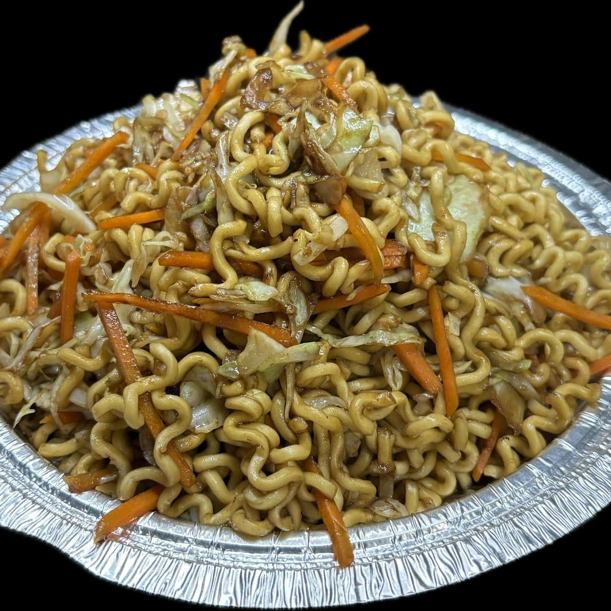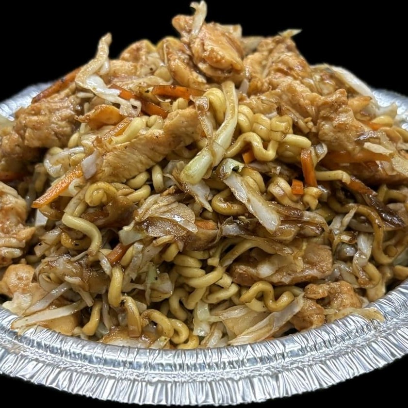 Feango, Carne, Calabresa, molho shoyu, repolho cenoura, ajinomoto e macarrão.