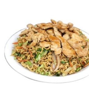 Macarrão de yakisoba, frango, cebola, cenoura, repolho e cebolinha. (escolha o tamanho médio ou grande)