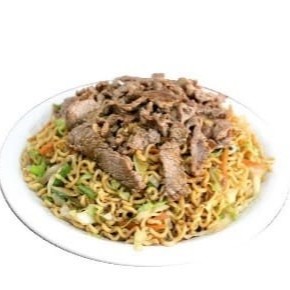 Macarrão de yakisoba, carne, cebola, cenoura, repolho e cebolinha. (escolha o tamanho médio ou grande )