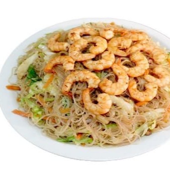 Macarrão de arroz, camarão, frango, calabresa, carne, cebola, cenoura, repolho e cebolinha. (escolha o tamanho médio 700g ou grande 1kg)