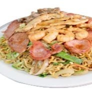 Macarrão de yakisoba, Camarão, Linguiça Calabresa, Frango, Carne, Cebola, Cenoura, Repolho e Cebolinha. (escolha o tamanho médio ou grande )