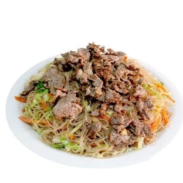 Macarrão de arroz, carne, cebola, cenoura, repolho e cebolinha. (escolha o tamanho médio 700g ou grande 1kg)