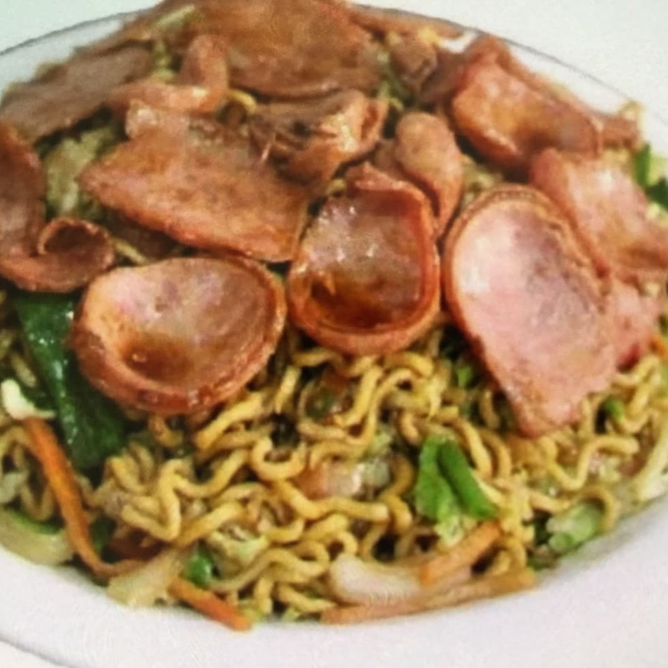 Macarrão de yakisoba, Bacon, Cebola, Cenoura, Repolho e Cebolinha. (escolha o tamanho médio ou grande )