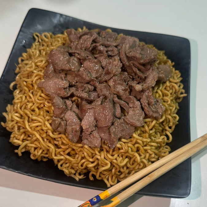 Preparamos um delicioso yakisoba de Carne com : Brócolis, Cebola, Cenoura, Repolho Verde, e nosso shoyu especial
