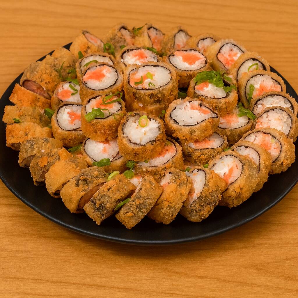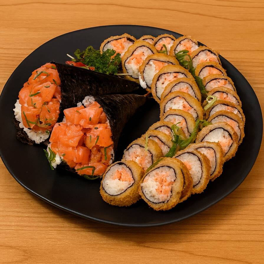 5 Sashimis salmão 4 Joys salmão 5 Sushis Salmão 5 Uramakis skin ao tarê 5 Uramakis filadélfia 12 Hots filadélfia 2 Harumakis camarão com Catupiry