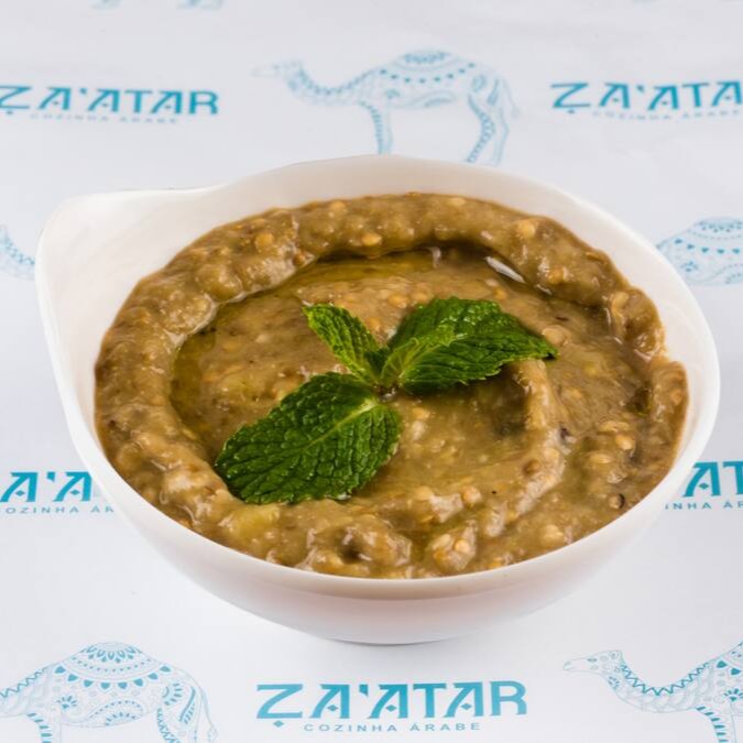 Deliciosa pasta de berinjela assada na chama, temperada com molho a base de gergelim, alho e limão. Acompanha cesta de pães.