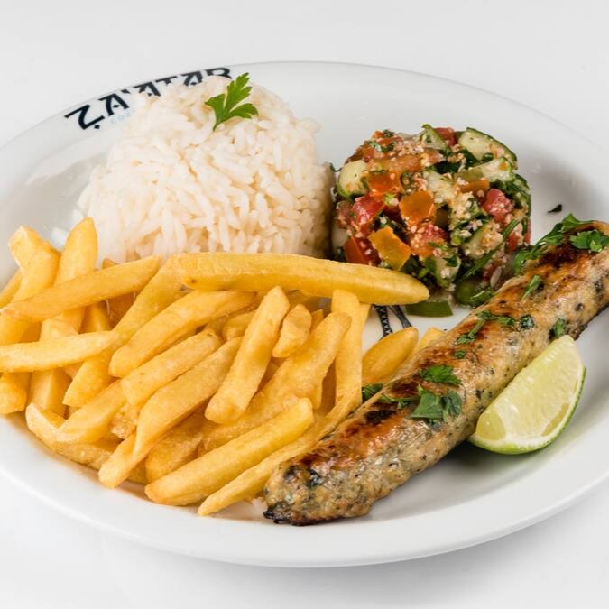 Kafta, Kafta de frango, Michuí de Linguiça de Cordeiro, Michuí de Frango, Michuí de Mignon. Acompanha mini- porção de tabule e pão árabe.